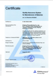 公司嚴格按ISO9001:2015《質量管理體系—要求》、ISO14001:2015《環境管理體系 要求及使用指南》、ISO 45001:2018《職業健康管理體系 要求及使用指南》和TSG 07—2019《特種設備生產和充裝單位許可規則》,建立完善的管理體系。公司擁有國內較大的12000KN冷拔機組和先進的全溫控不銹鋼固溶退火爐等生產設備,同時具有ET16-159渦流探傷儀、UT16-159超聲波探傷儀、UT159-830超聲波探傷儀、H159-630水壓試驗機、WAD—600液壓材料試驗機、4XB電腦金相顯微鏡、JQ—300沖擊試驗機、HBRVU—187.5硬度計、島津光譜儀、化學分析儀、晶間腐蝕試驗等完善的檢測設備。